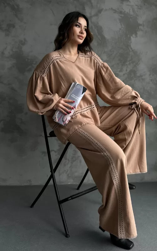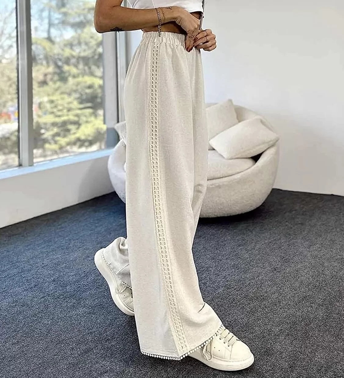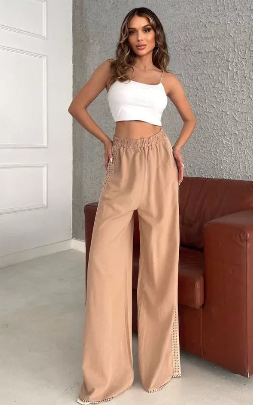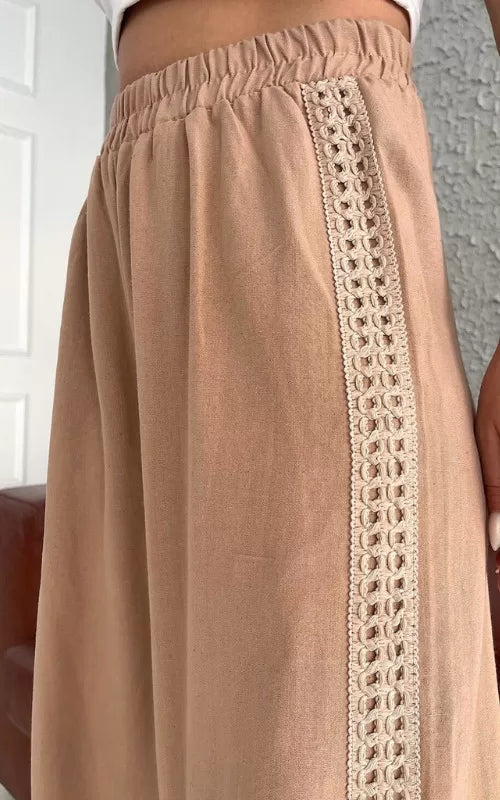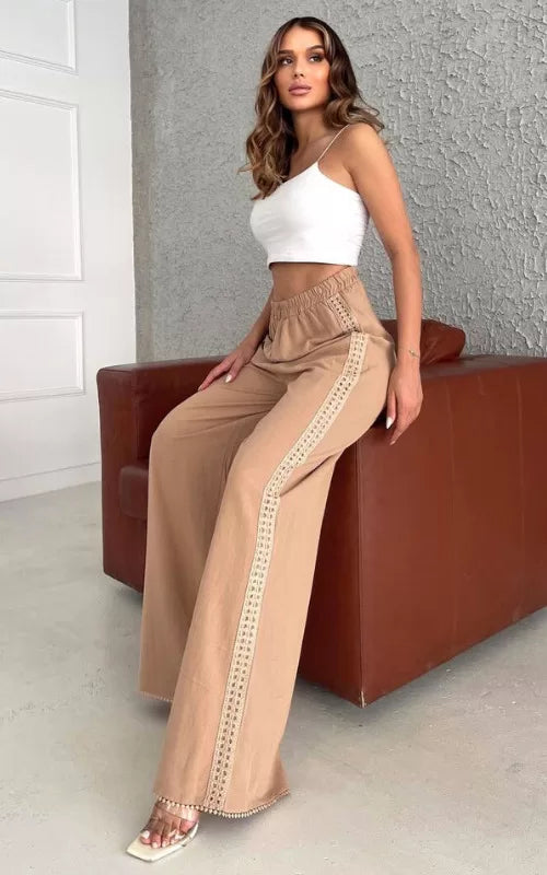 Elevate your style with our straight leg linen pants, featuring delicate embroidery along the side. Perfect blend of comfort and sophistication.