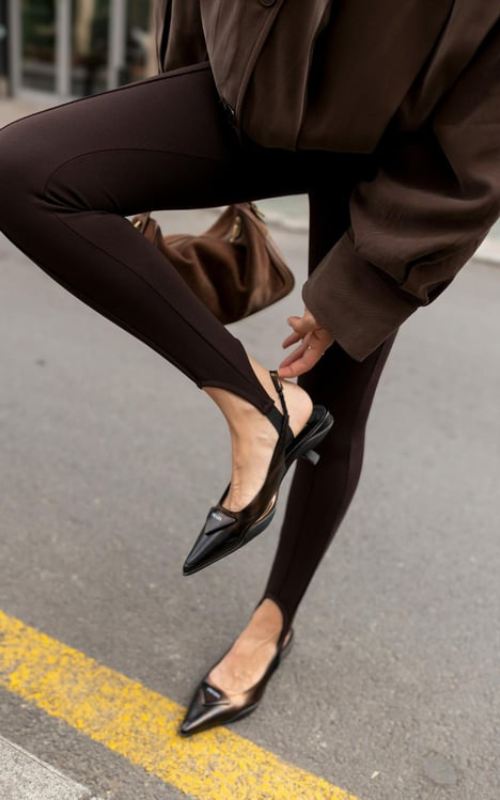 Body hugging, high waisted leggings featuring ankle hugging elastics to secure your look. Decorative seam going along the front of each leg.