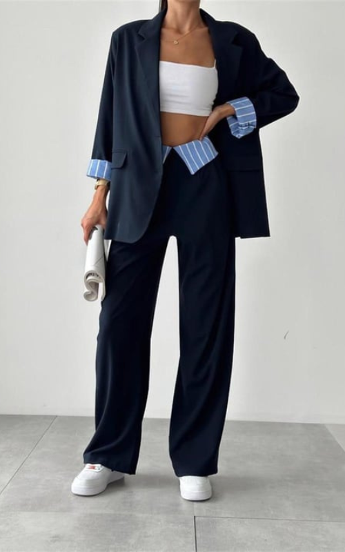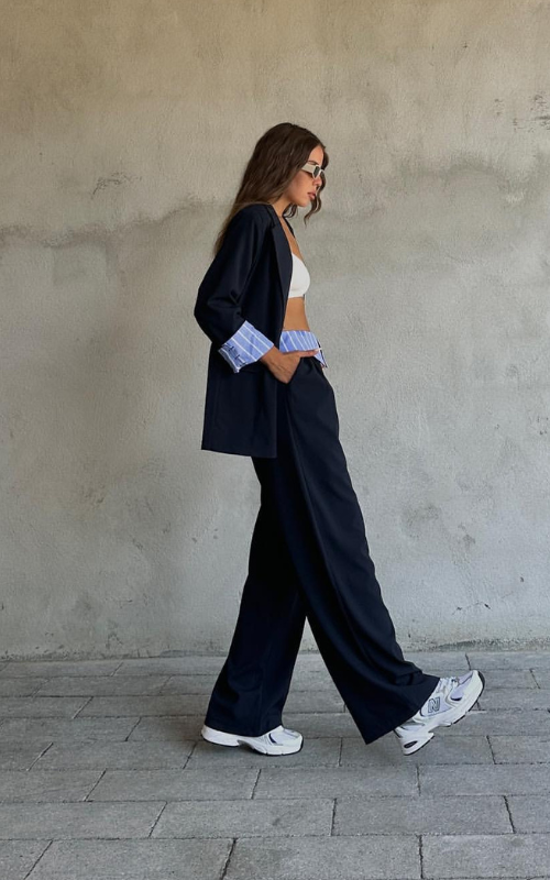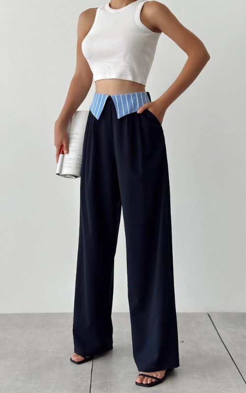 The Mia Flex Pants boast a unique waist design with an elastic waistband for comfort and style. Made from lightweight fabric, they offer a flattering fit for any occasion.