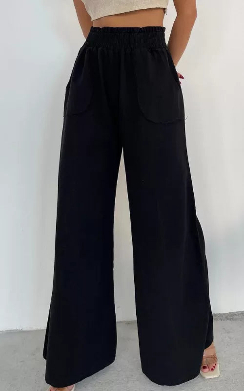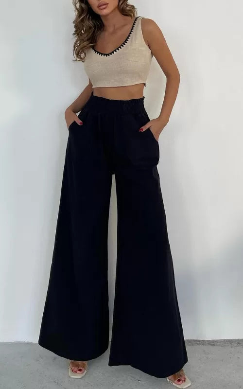 Crafted from light, breathable linen, our flared pants offer a high-rise waist and an elegant, timeless silhouette.