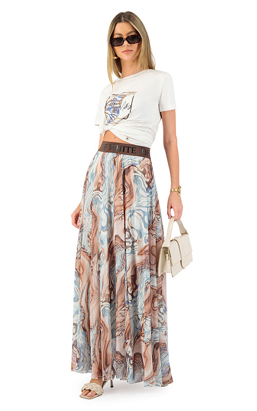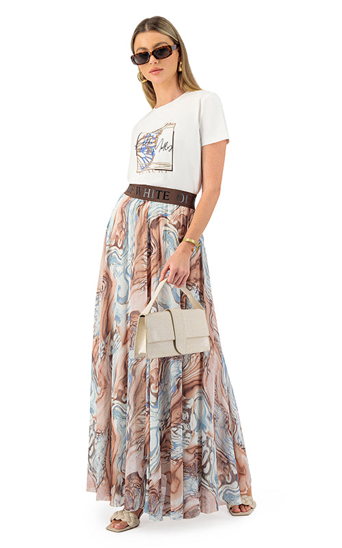 Shy Girl Marble Print High-Waisted Maxi Skirt