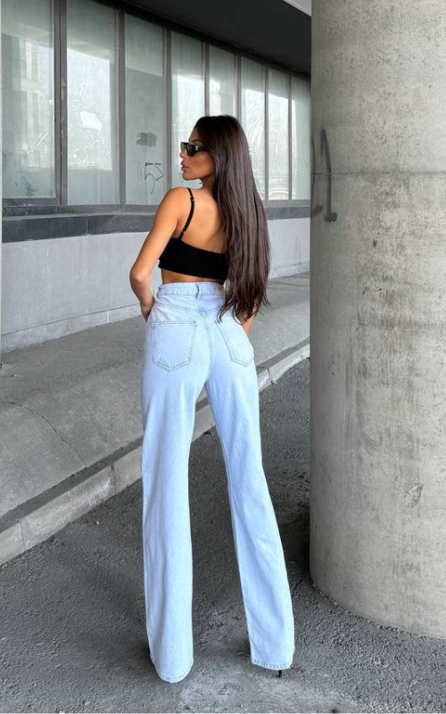 Our Edge Pants feature a light blue wash, premium fabric, and a high-waist fit, with edgy line details across the front, creating a trendy and unique vibe.