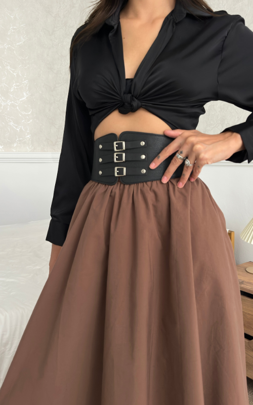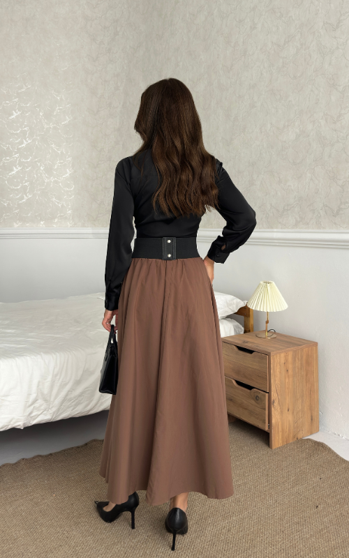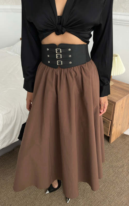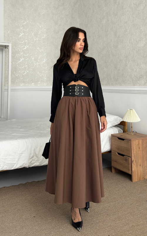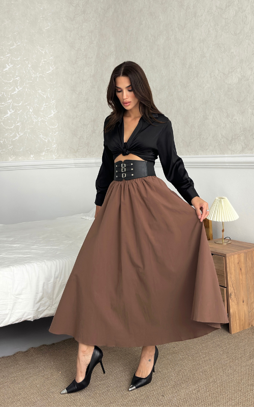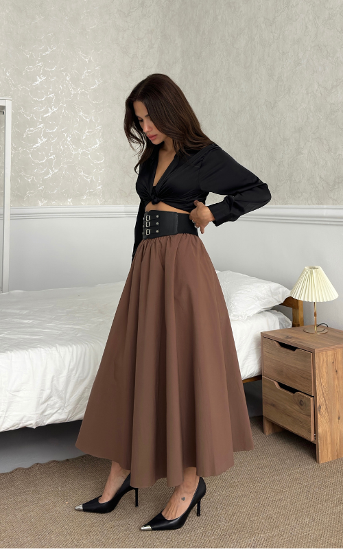 The Yara Skirt is a midi skirt crafted from lightweight poplin, designed with a flounced silhouette. Featuring a comfortable elastic waistband, a flowing drape and two  pockets.