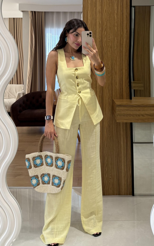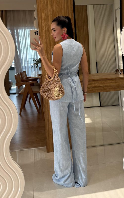 Get ready for the compliments with our Anya Set, made of luxe linen fabric, it features a square neckline vest with faux pockets and comfy creased pants with drawstring.
