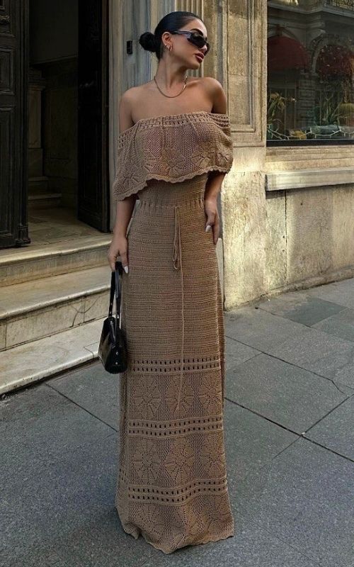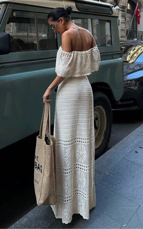 Our La Mer Dress is an off-shoulder maxi dress crafted from soft, breathable fabric that offers a boho touch and drawstring waist to highlight your figure.