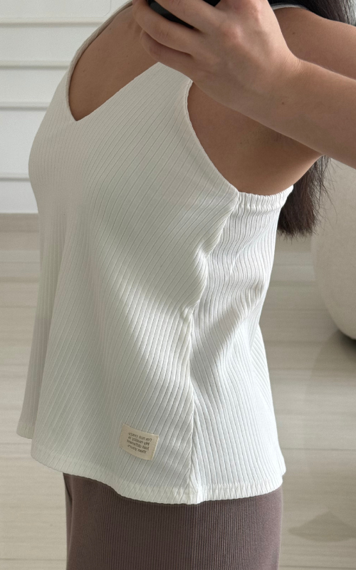 Soft V-neck top with an easy, relaxed fit. Designed with elastic detailing at the back for added comfort and flexible sizing — The fabric contains organic cotton and elastane.