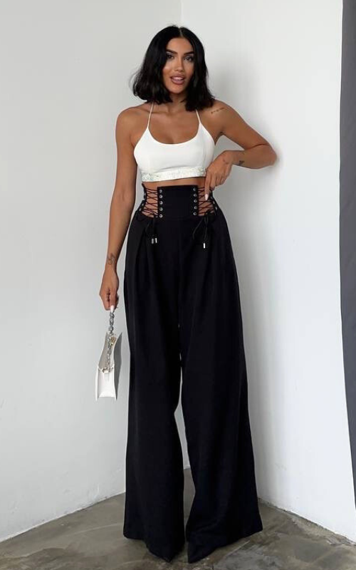 Embrace sophistication in our Venus Pants, featuring a statement lace-up front that allows you to customize your look with a playful twist.