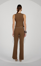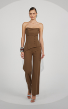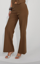 The Divina Pants is a tailored high-waisted pants featuring a structured fit with softly flowing wide legs. The front is finished with a concealed zipper closure and subtle panel detailing.
