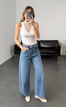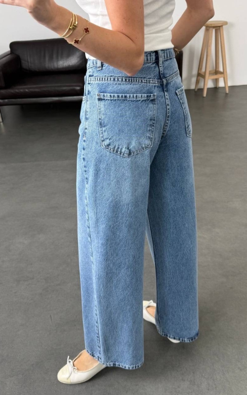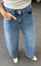 Barrel-cut high-waisted jeans featuring lightly washed design and a relaxed, sculpted silhouette. Crafted from classic blue denim for a modern, structured look.
