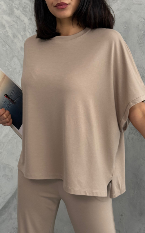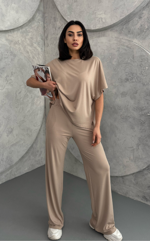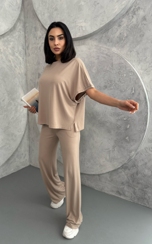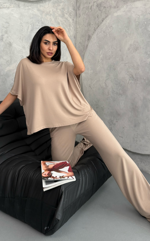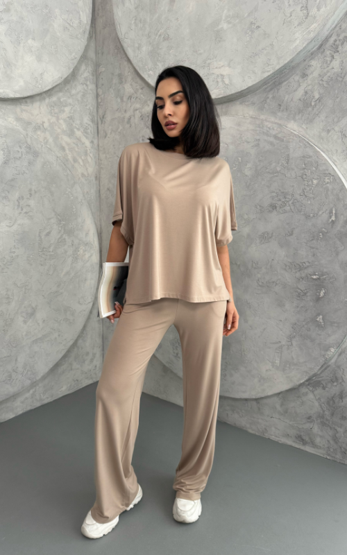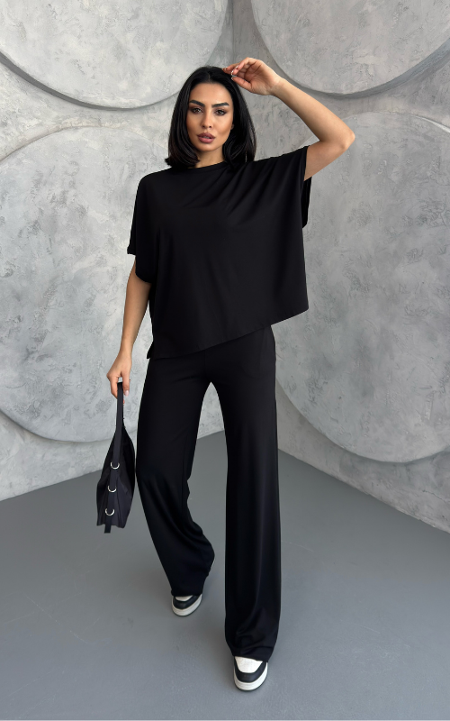 Crafted from soft, breathable fabric, the Julie Set features a batwing 3/4 sleeve top with a crew neckline, paired with flared-cut bottoms for a flowy, flattering silhouette.