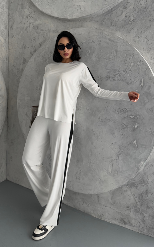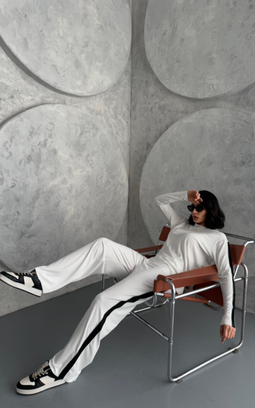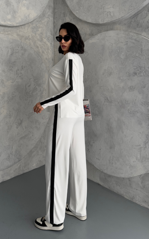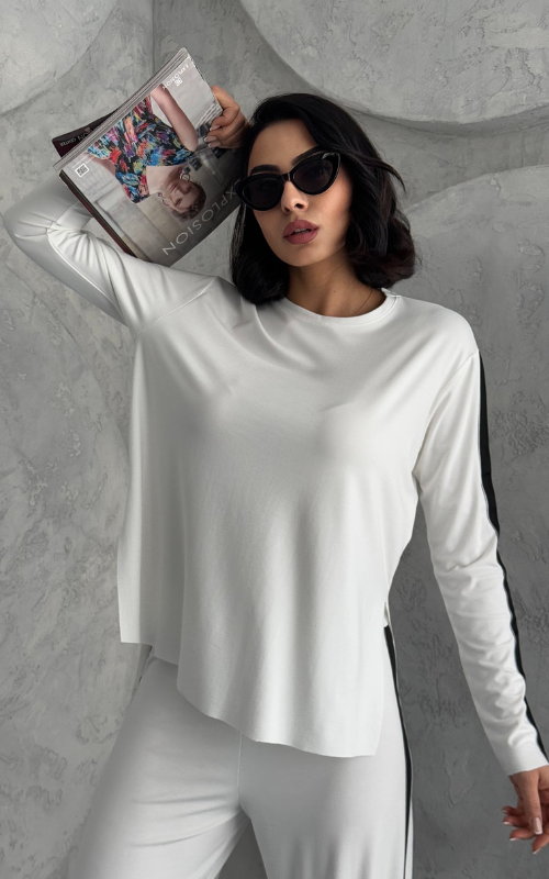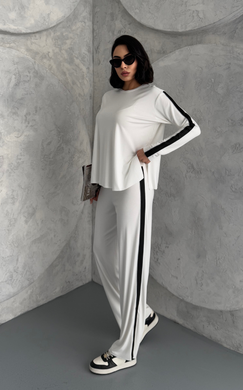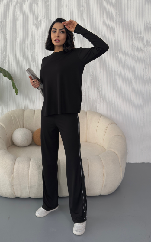 Our Kelly Set is a stylish two-tone matching set featuring a comfy long-sleeve top and straight-cut pants. Perfect for effortless, everyday wear with a modern touch.