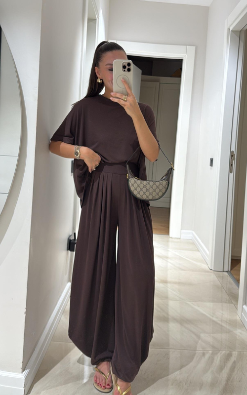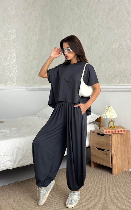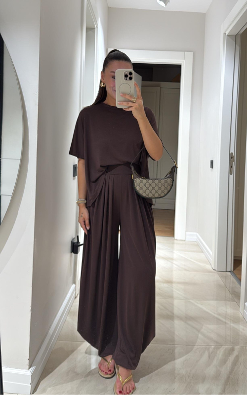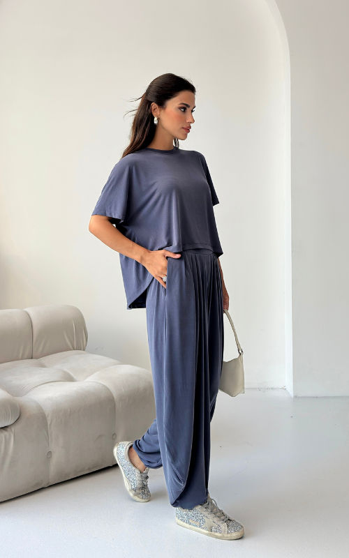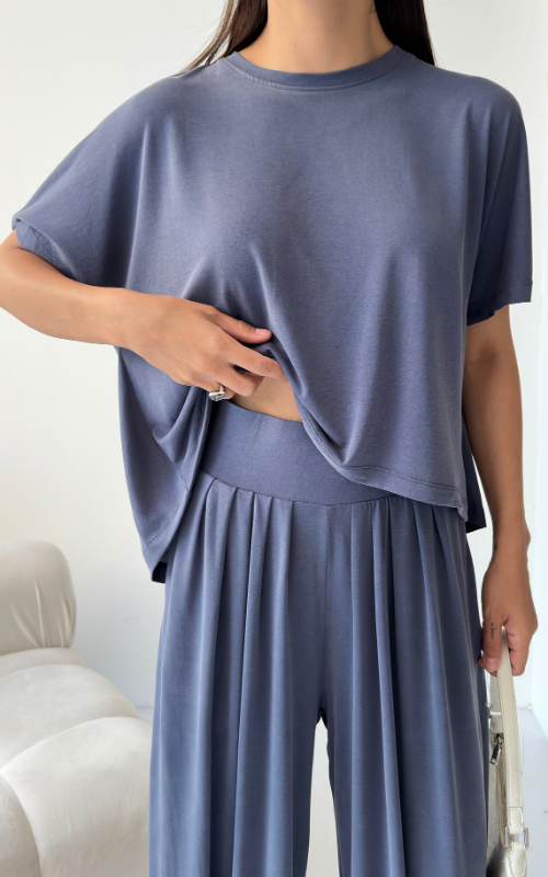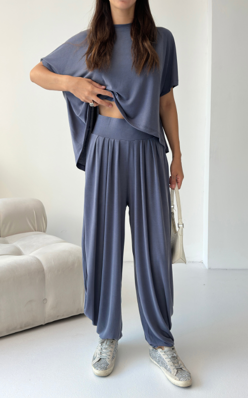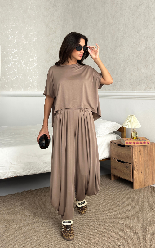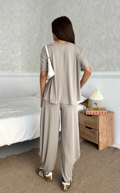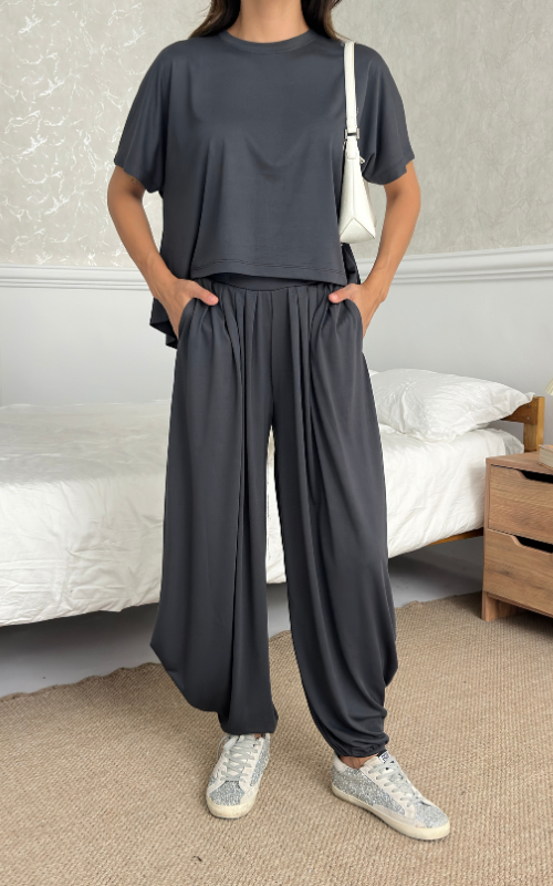 Made of soft fabric, the Tango Set features a relaxed-fit short-sleeve top and the matching high-waisted pants are designed with pleated front panels, side pockets and a cuffed hem.