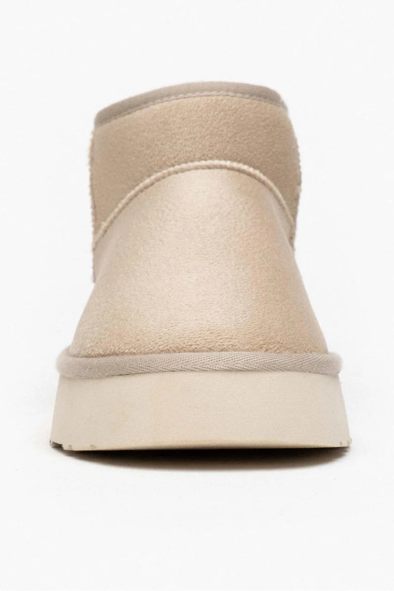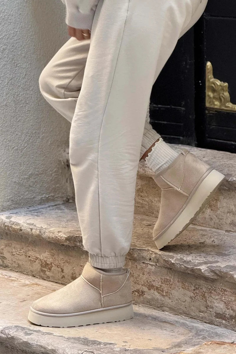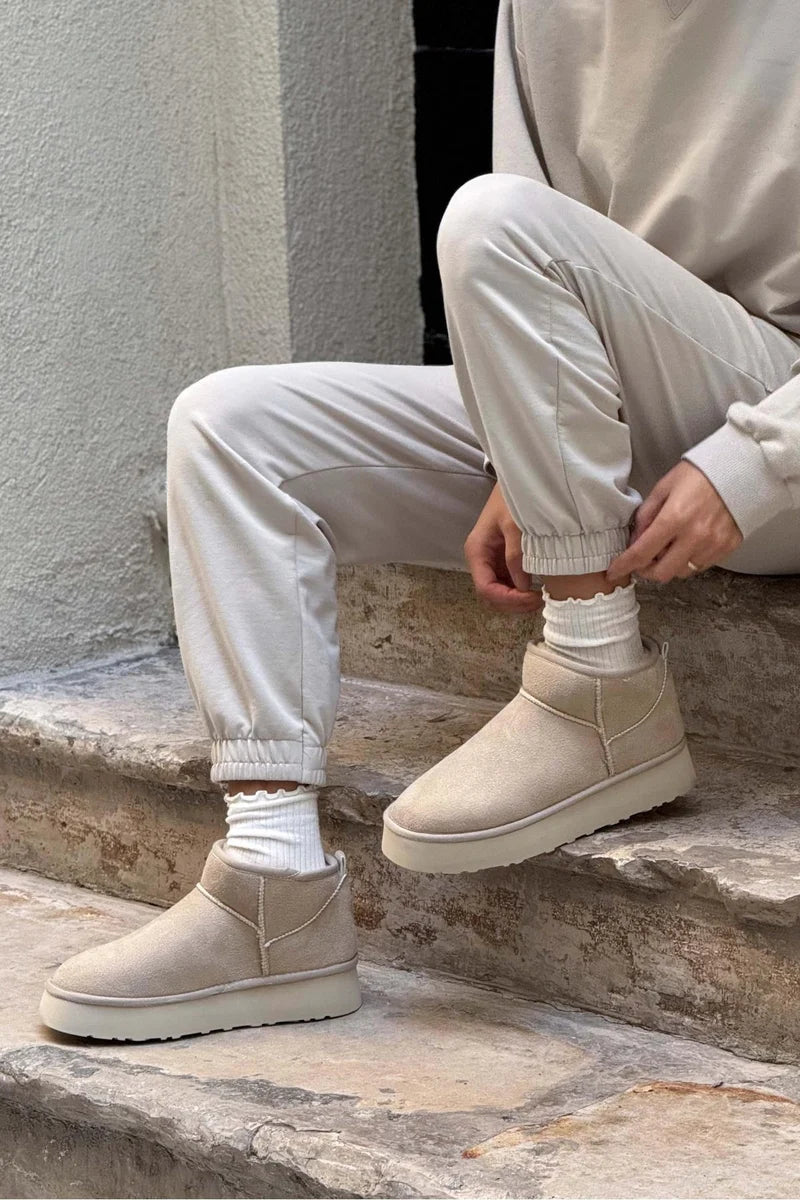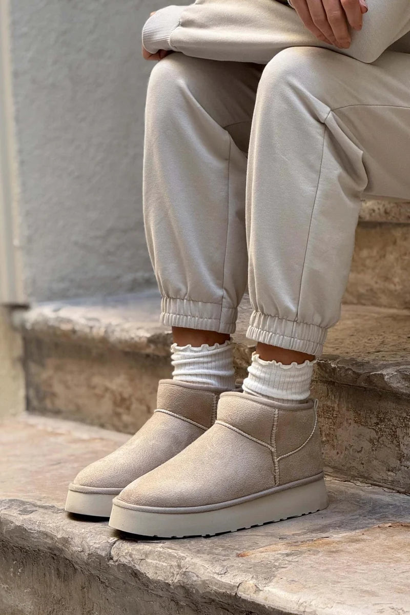 These trendy ankle boots boast a cozy fur interior and a chunky platform sole for added height and comfort. Ideal for stylish warmth during colder months.