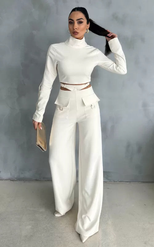 Our Daring Top is a perfect blend of sophistication and trend. The buttoned sleeves and high collar add a touch of vintage flair, while the crop cut ensures a modern and playful vibe.