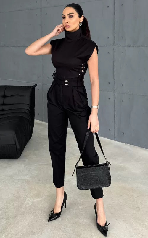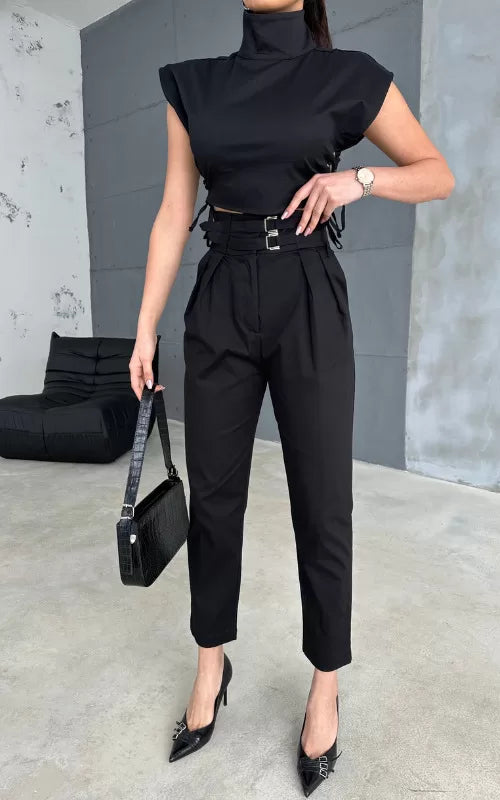 Experience the luxury of flawlessly made pants with our Elite Pants, a high-waisted pants featuring double-buckle detail and perfectly tailored upper pleats.