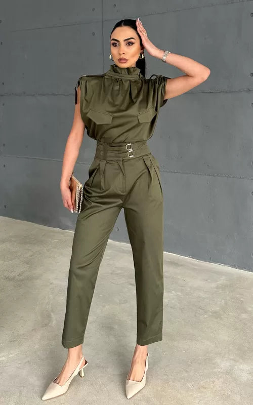 Experience the luxury of flawlessly made pants with our Elite Pants, a high-waisted pants featuring double-buckle detail and perfectly tailored upper pleats.