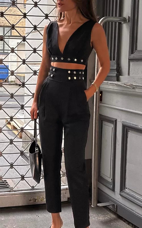 Introducing our Mannequin Pants, a well-crafted high-rise tapered cut pants with a flattering button-adorned waistband and two chic pockets on the sides.