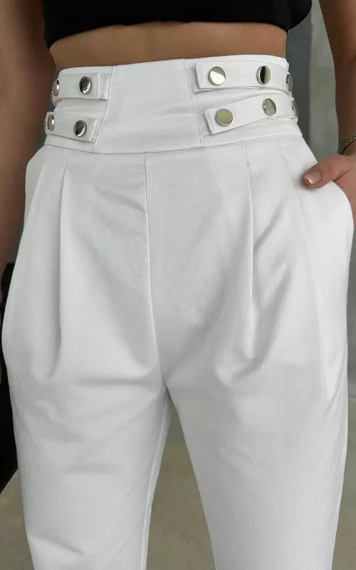Introducing our Mannequin Pants, a well-crafted high-rise tapered cut pants with a flattering button-adorned waistband and two chic pockets on the sides.