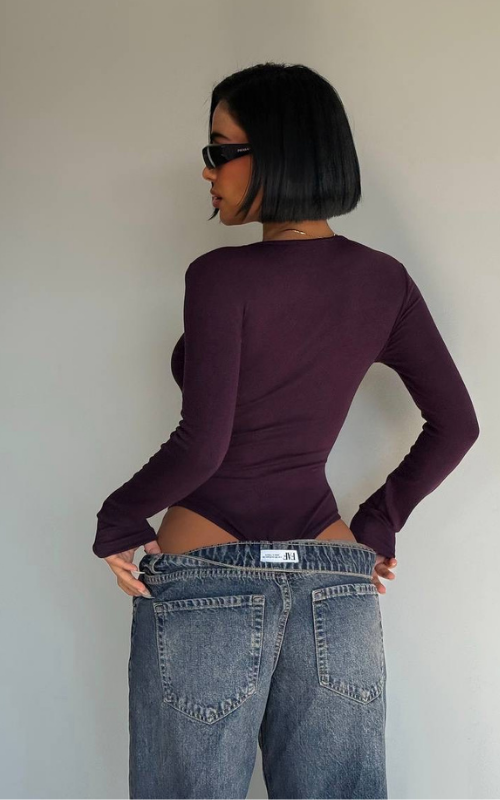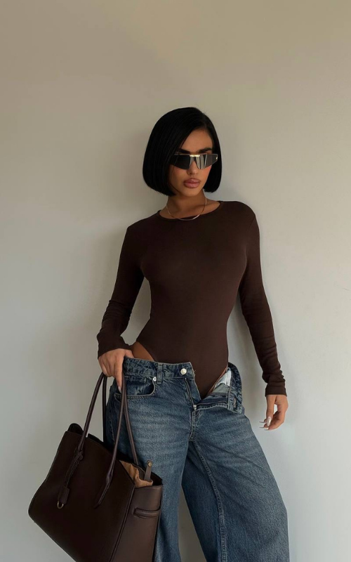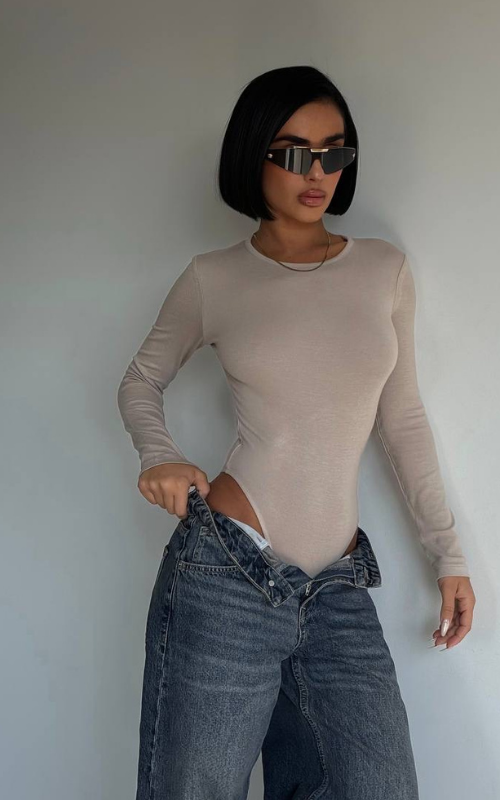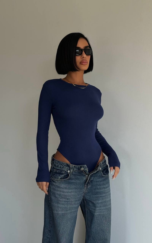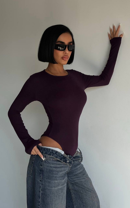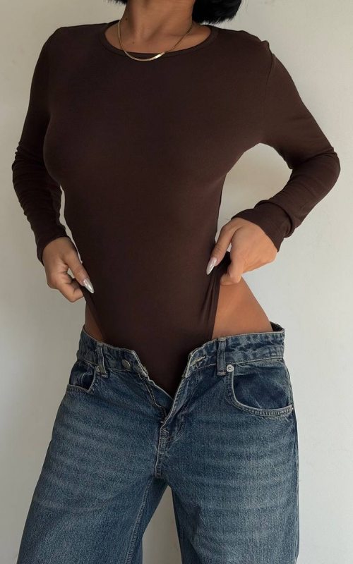 A sleek round-neck bodysuit designed for a smooth, flattering fit. Perfect for layering or wearing solo.