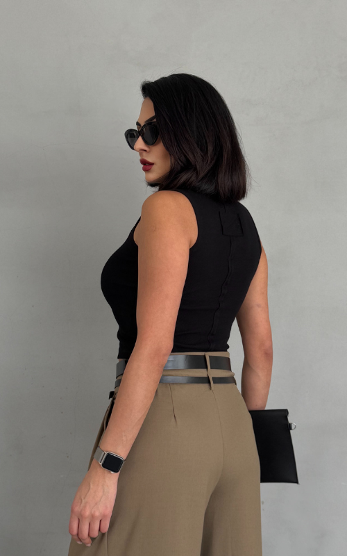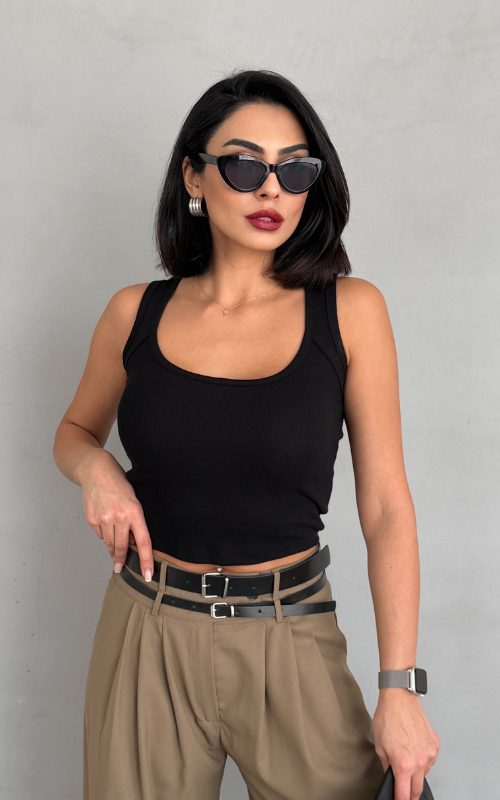 The Emmy Top features a square neckline with a racerback design, featuring extra detailing on the back for a unique touch. Made from soft fabric for a comfortable and stylish fit.