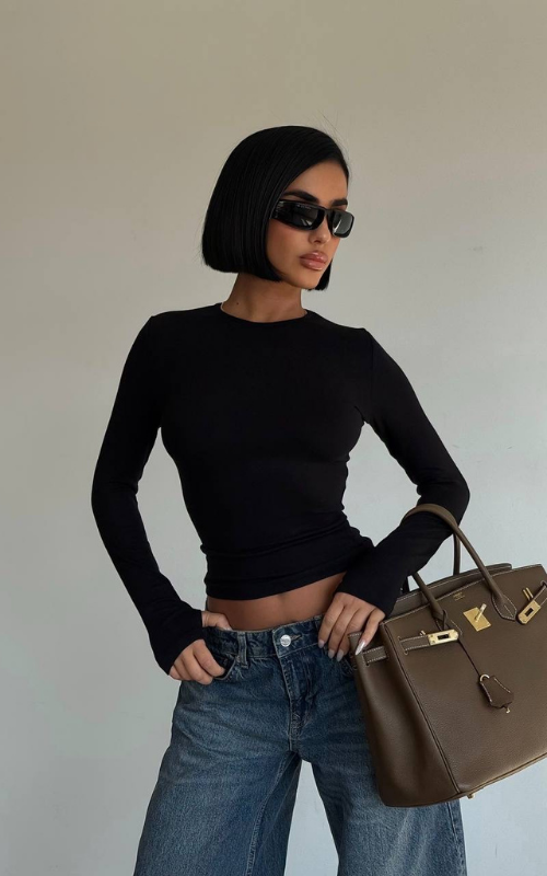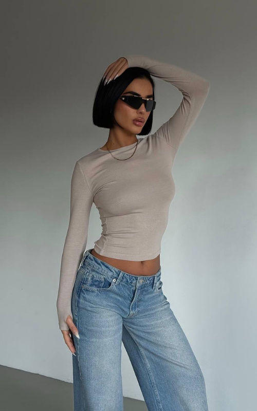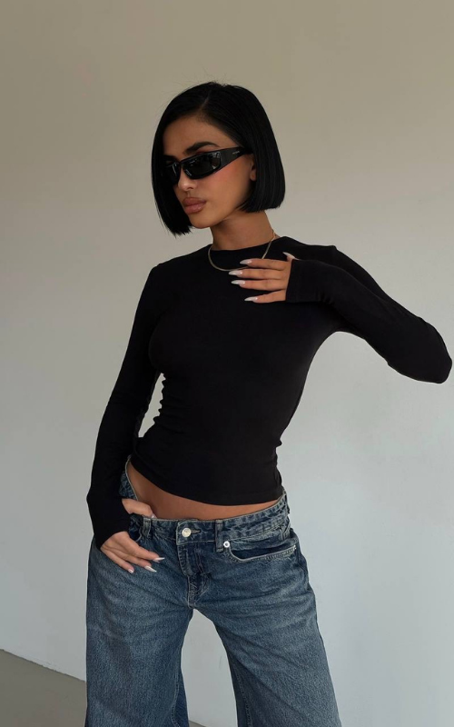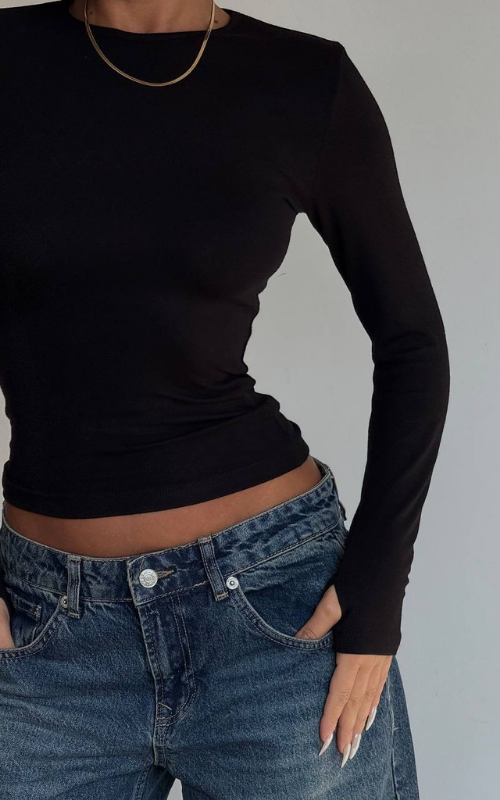 Timeless long-sleeve top with a soft round neck - simple, flattering, and made to pair with anything