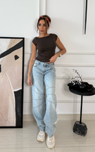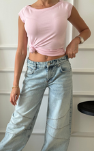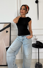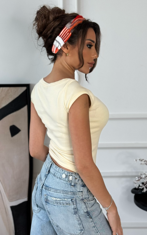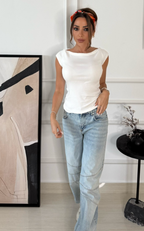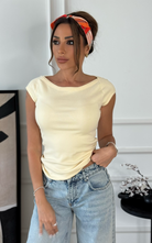 The Athena Top features a classic boat neckline, short sleeves, crafted from stretchy fabric that hugs your body—perfectly versatile to pair with any bottoms.