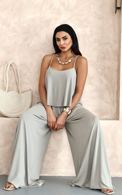 A comfy top and pant duo made from soft cotton, perfect for casual outings and lounging.