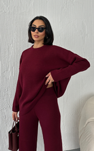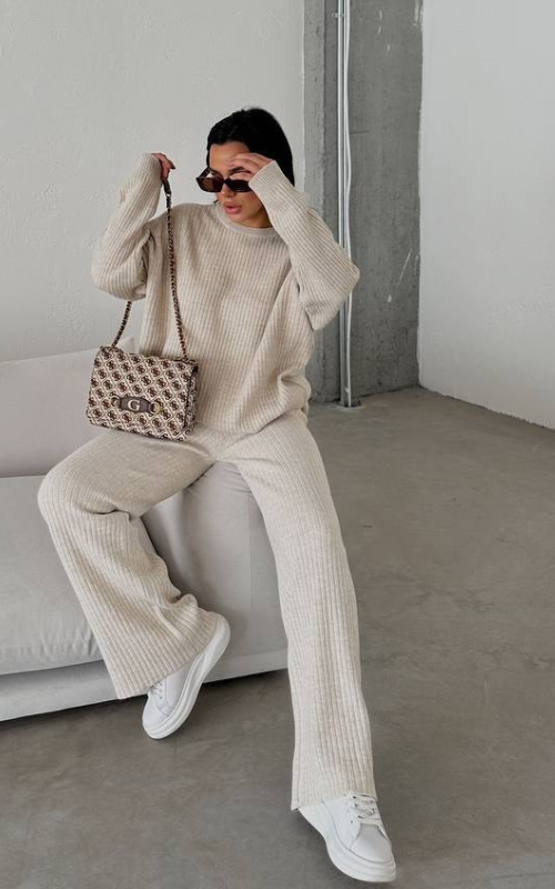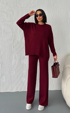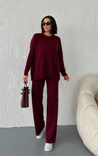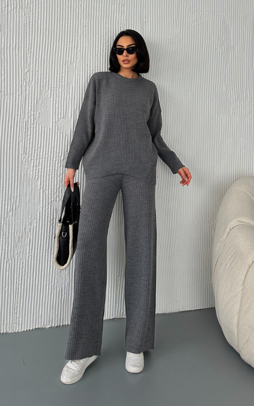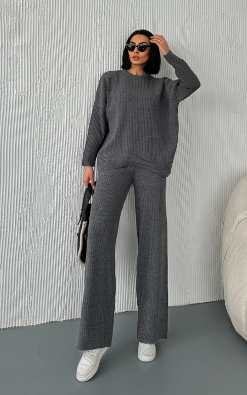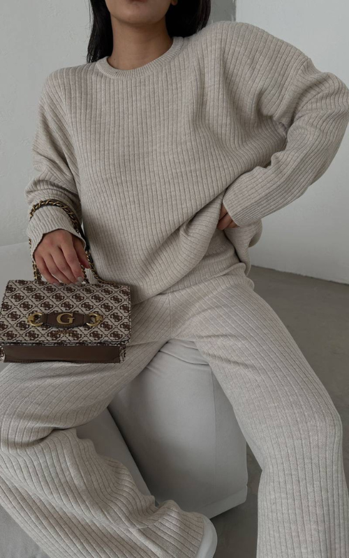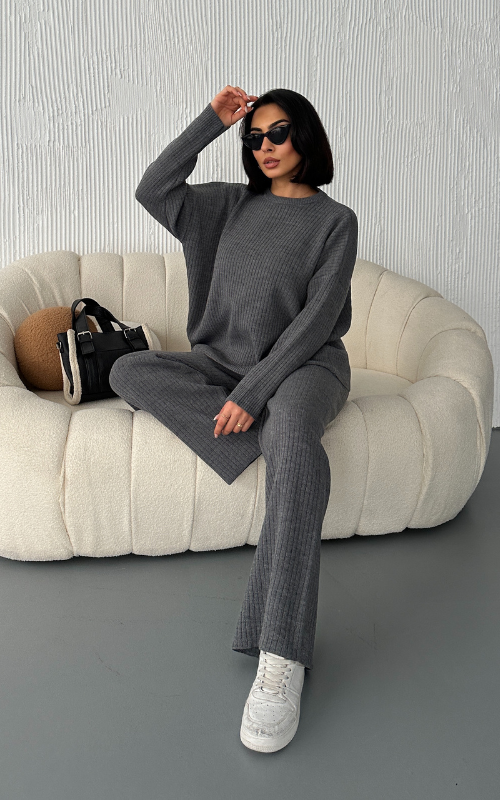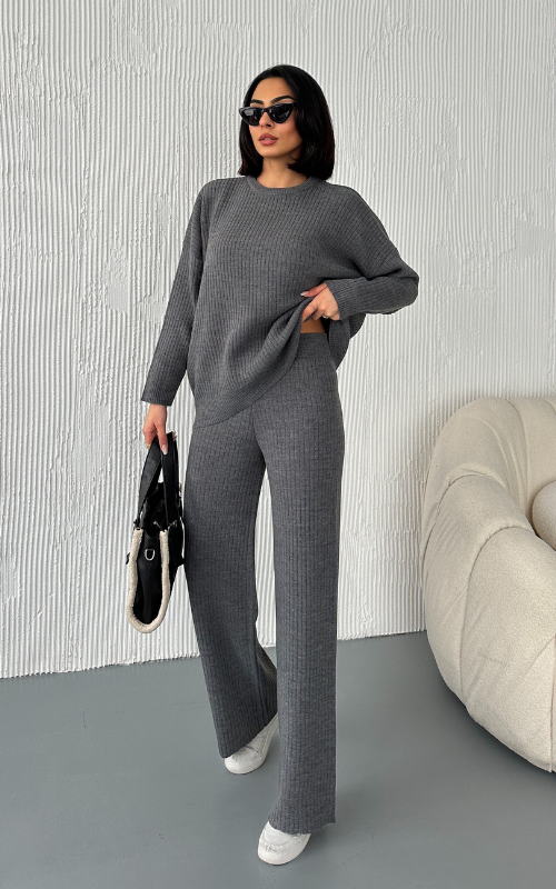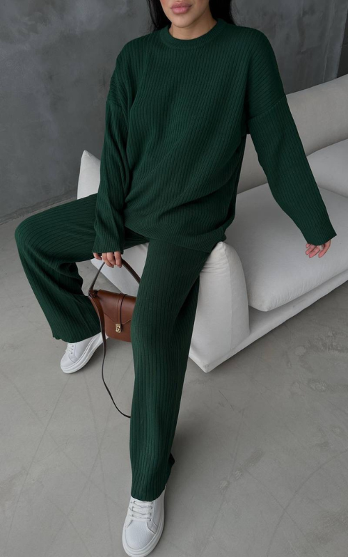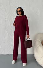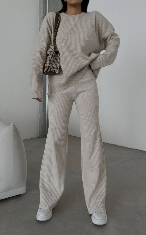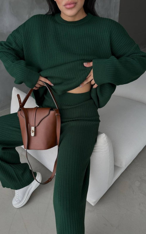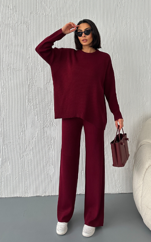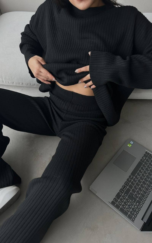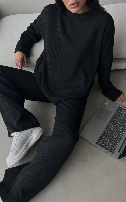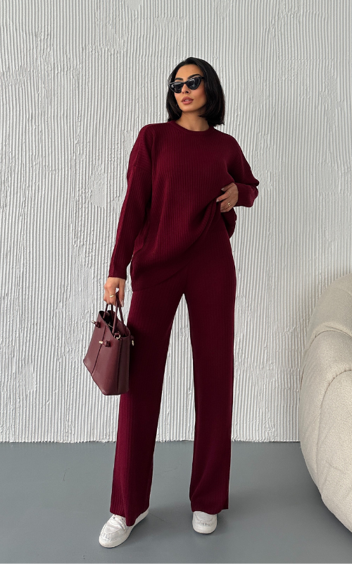 The Curvy Bliss Set is a stylish knit ensemble designed for curvier figures, featuring a fitted top and matching pants. Made from soft, stretchy fabric, it offers all-day comfort and chic sophistication, perfect for lounging or casual outings.