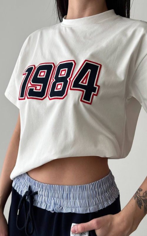 This comfy Eighties T-Shirt features a classic crew neckline and a 1984 patch on the front, making it a versatile staple that pairs effortlessly with any bottoms.