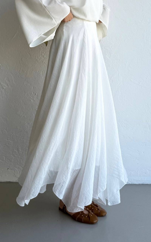 The Elya Skirt features a flowy, lightweight and layered design that moves gracefully with every step. Its flared cut, high-waisted design and airy fabric create an elegant, feminine look.