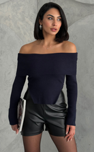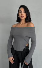 Stand out from the crowd with the Fame Top, a sleek off-shoulder knitted design with a body-hugging fit, a chic cut-out trim at the waist, and a functional zipper for a flattering silhouette.