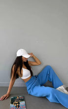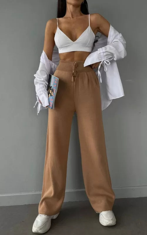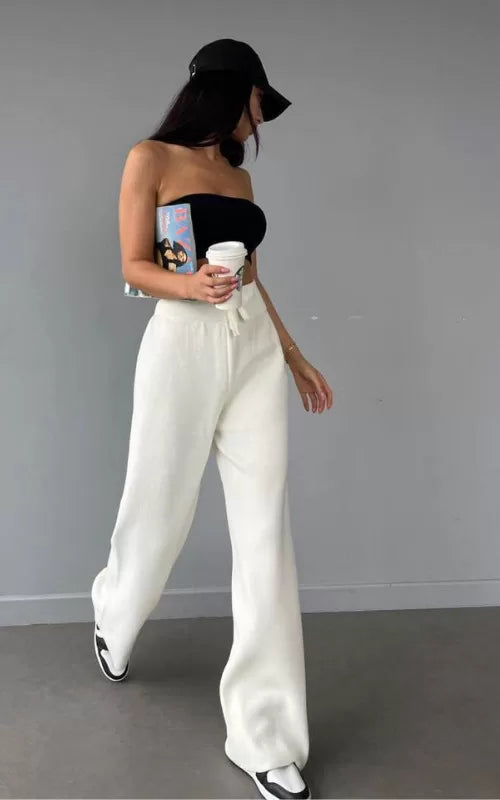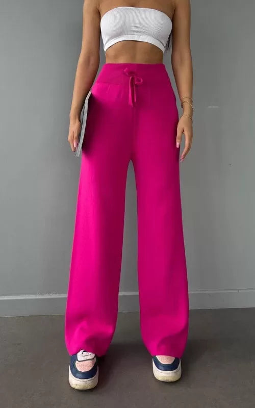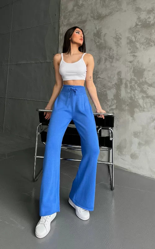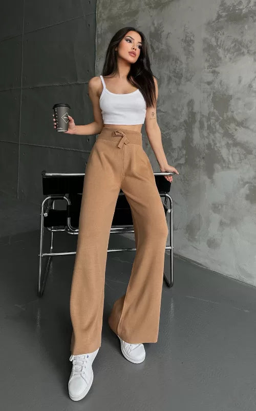 Our Flare Knits Pants are designed for all-day comfort, featuring a high-waisted design with elastic waistband with an adjustable drawstring for the perfect fit. The flared silhouette adds a touch of effortless style.