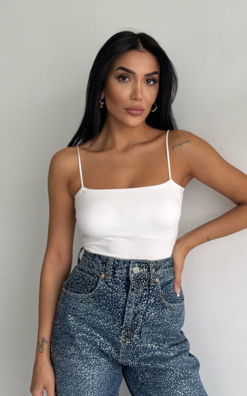 Our Grace Top is a spaghetti strap padded cami that is a basic essential in every wardrobe. Perfect for layering under other tops or wearing on its own for a simple, stylish look.