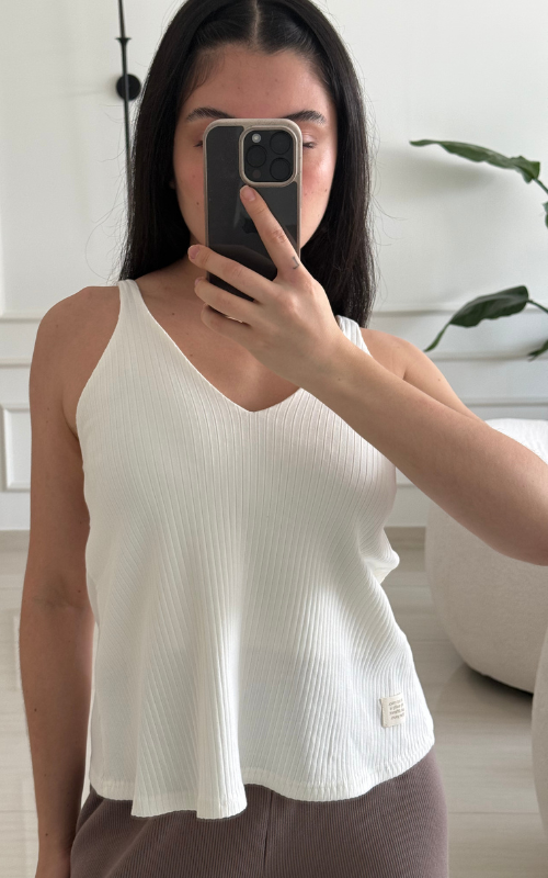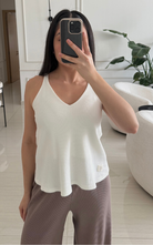 Soft V-neck top with an easy, relaxed fit. Designed with elastic detailing at the back for added comfort and flexible sizing — The fabric contains organic cotton and elastane.