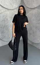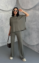 Crafted from soft, breathable fabric, the Julie Set features a batwing 3/4 sleeve top with a crew neckline, paired with flared-cut bottoms for a flowy, flattering silhouette.