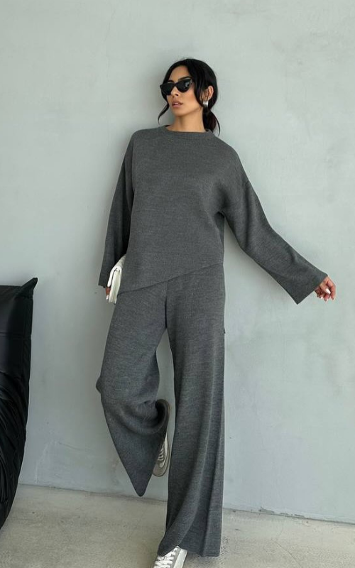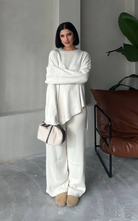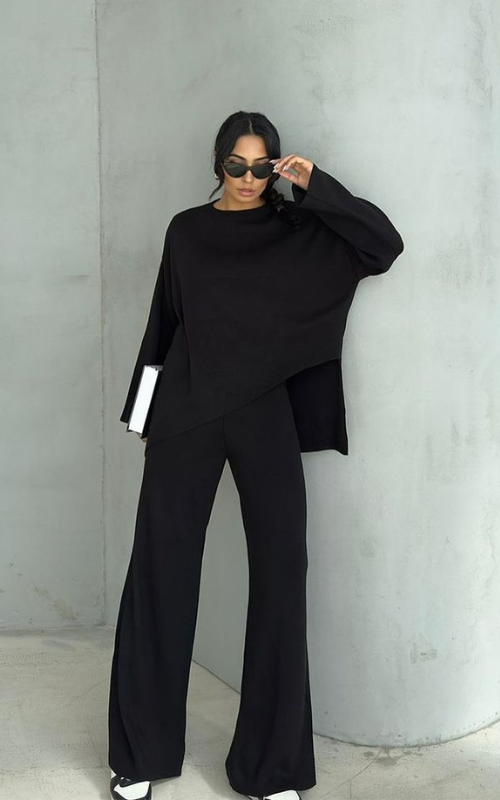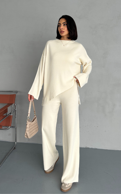The Lauren Set Set features a stylish top with a split hem on the sides, paired with comfortable bottoms. Perfect for a chic yet relaxed look, this set is a wardrobe essential!