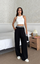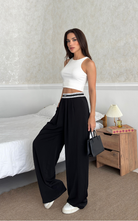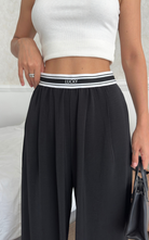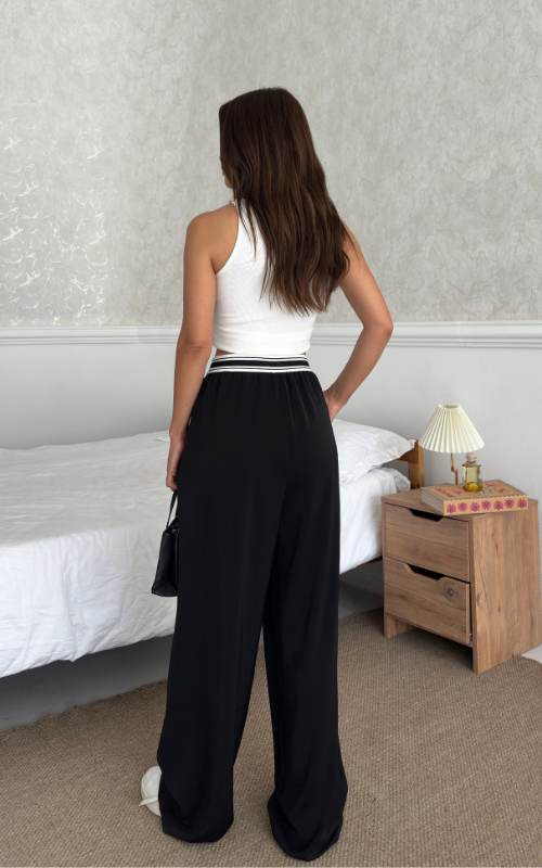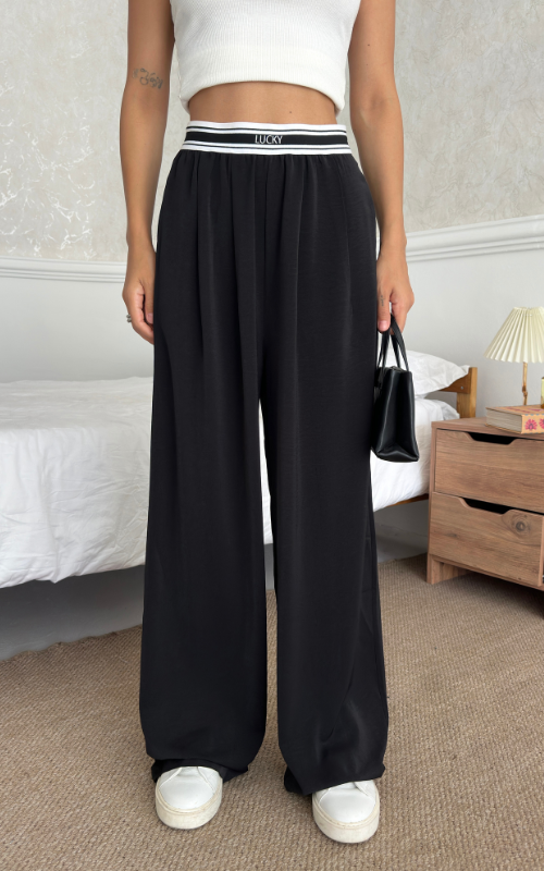 Our Lucky Pants is a wide-leg pants featuring a soft, flowy fabric. The elastic waistband has a sporty double-stripe detailing thats adds a casual-chic touch.