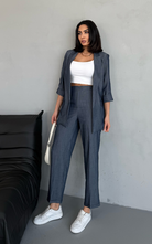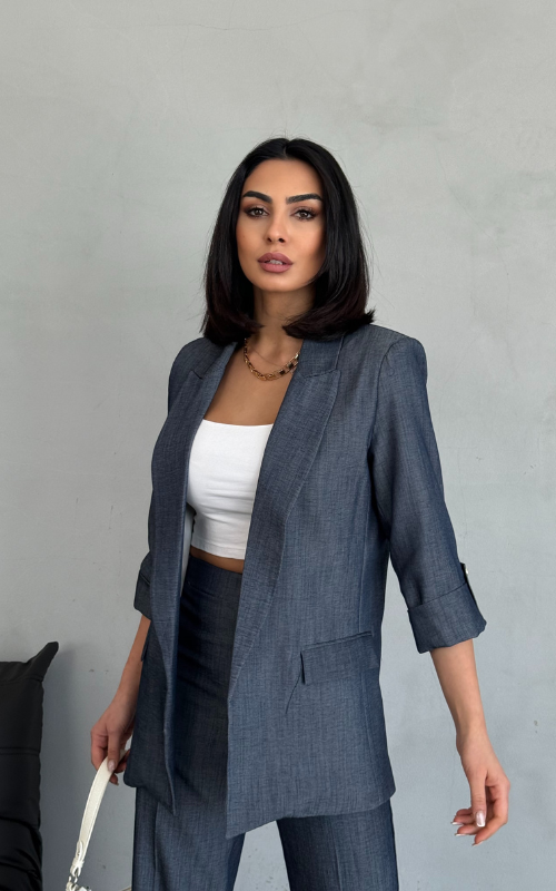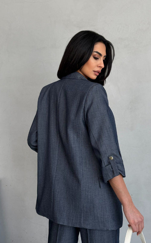 Our Martha Blazer is crafted from high-quality fabric and features functional sleeve buttons for a stylish rolled-up look, along with front flap pockets for added convenience and sleekness.