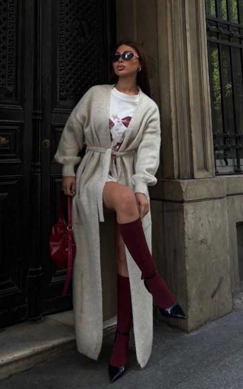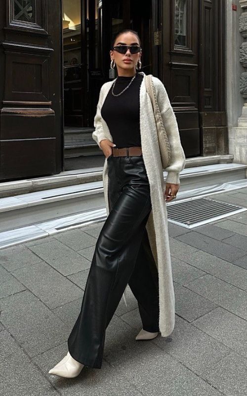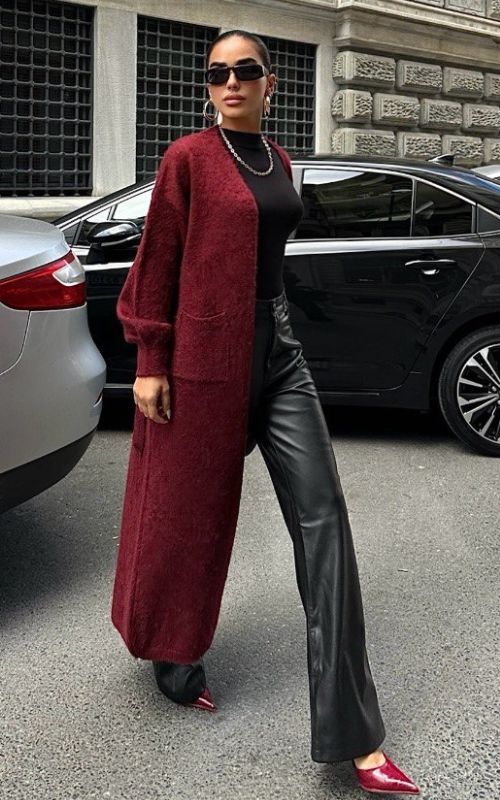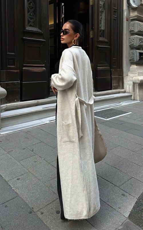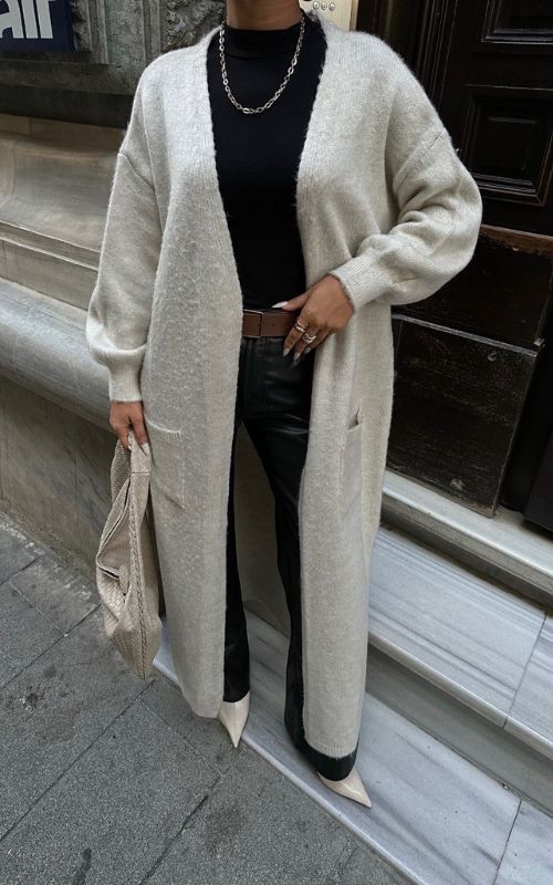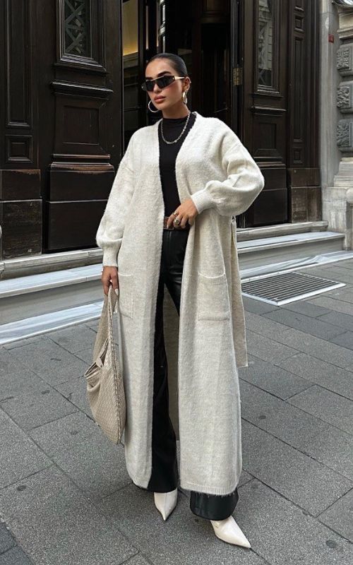 Stay cozy and stylish with the Maya Knit Cardigan. This long cardigan features a matching fabric belt and handy pockets, making it the perfect layering piece for any outfit!