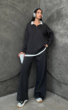 Elevate your winter style with our Milan Set, featuring a cozy, two-tone, long-sleeve top and matching pants, both crafted from soft, high-quality fabric to keep you warm and stylish.