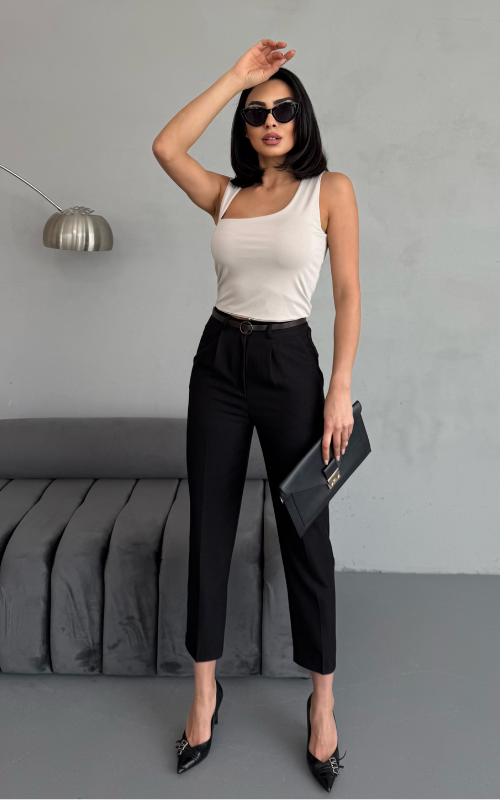 A fusion of style and comfort, the North Pants feature a high-waist, tapered design with pockets, a sleek belt, and an elastic waistband for a flawless fit. The front crease adds a touch of elegance.