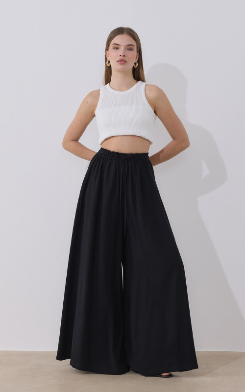 The Oak Pants feature a relaxed, wide-leg silhouette that drapes elegantly with every step. Designed with a comfortable elastic waistband and adjustable drawstring.