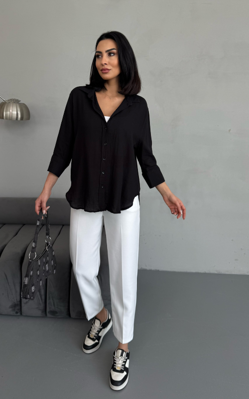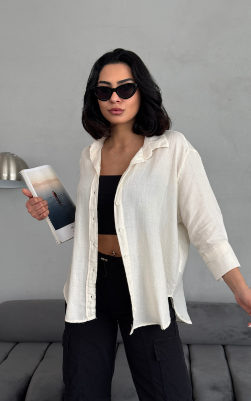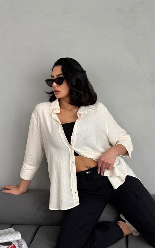 Our Polly linen shirt features a comfortable, relaxed fit with long sleeves, a classic collar.