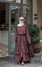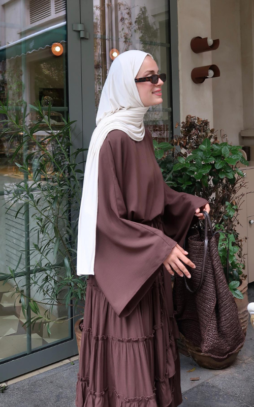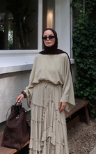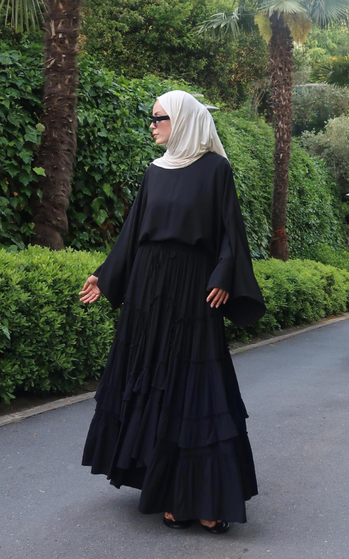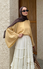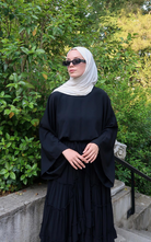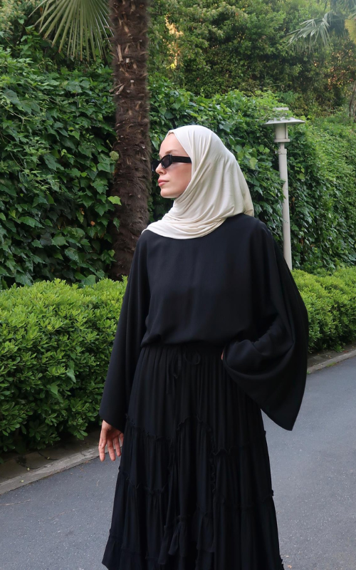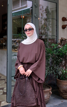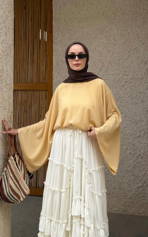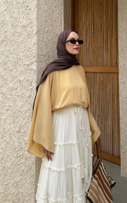 The Regina Top features an oversized batwing sleeves that brings comfort and effortless elegance. While the high round neckline adds a modest touch.