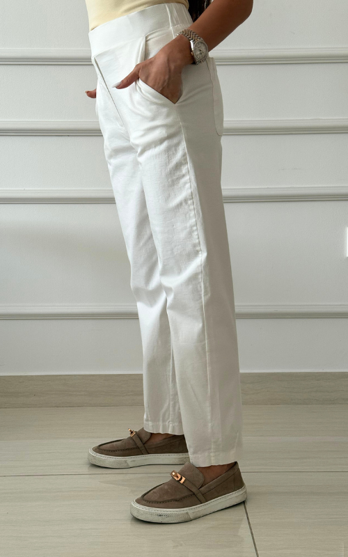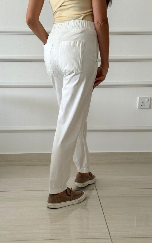 The Republic Pants are stylish mom-style trousers made from high-quality material, featuring a comfortable waistband and two functional pockets.