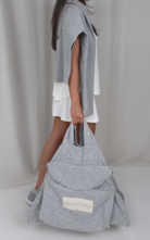 Spacious, open quilted tote crafted from soft, lightweight fabric. Designed with a relaxed silhouette, sturdy top handles, snap buttons on the sides and a front pocket with contrast label.