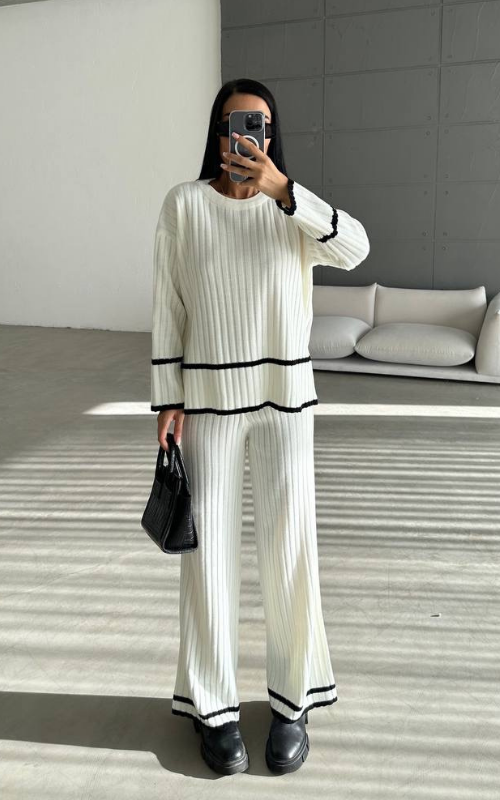 Our Roxy Ribbed Set features a textured fabric with stylish horizontal lines for a modern touch. The snug-fitting design offers warmth and comfort.