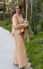Wide leg pant featuring a thin elasticated waistband The fabric contains organic cotton and elastane.