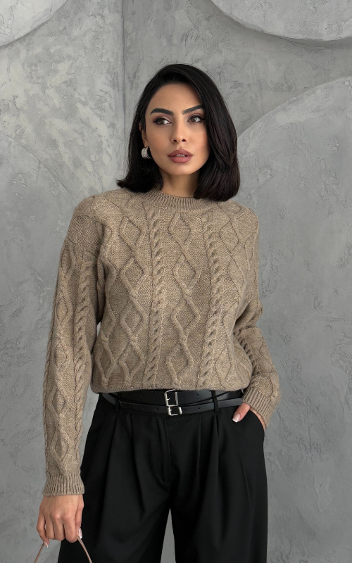 Stay cozy in our Shelly Top, a cable knit top featuring a warm design with a ribbed round neckline and cuffs. A timeless basic and a must-have for any wardrobe.
