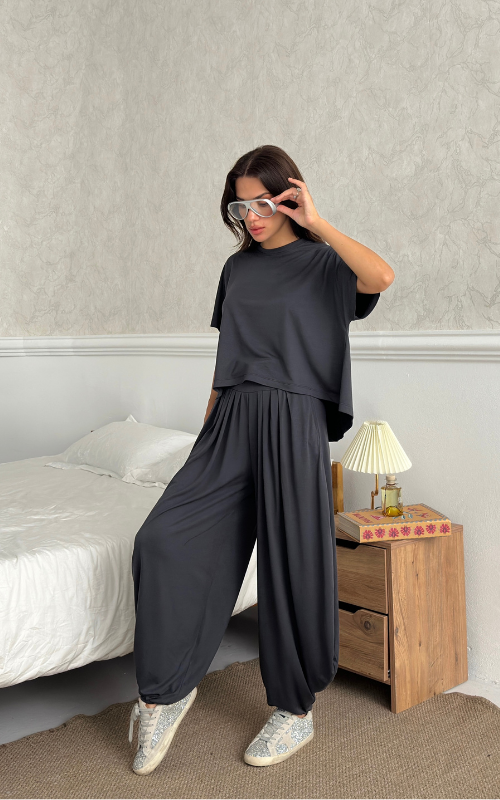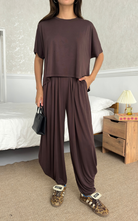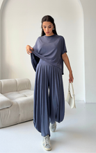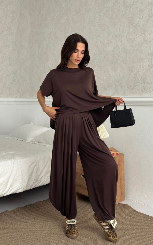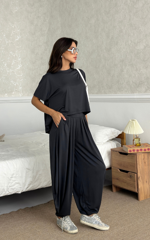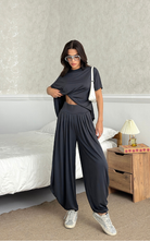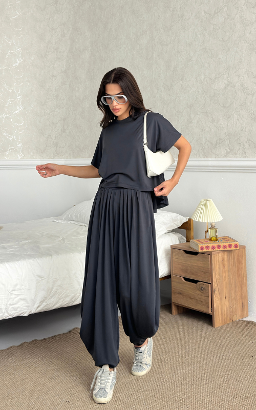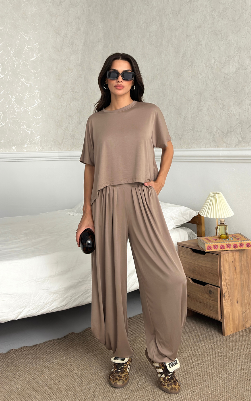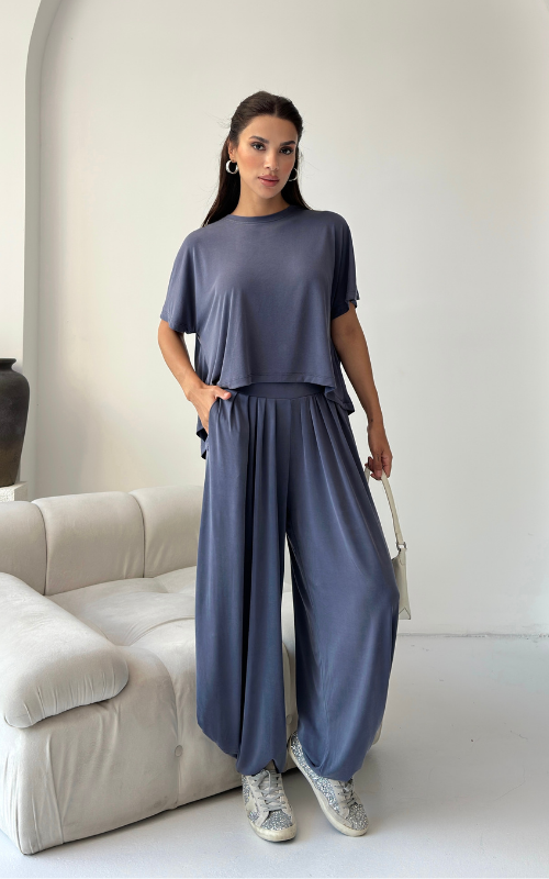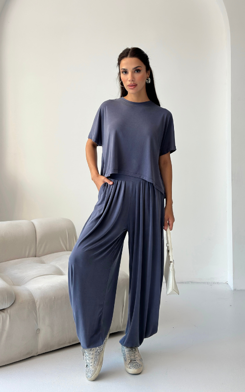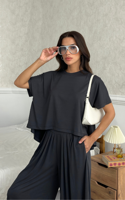 Made of soft fabric, the Tango Set features a relaxed-fit short-sleeve top and the matching high-waisted pants are designed with pleated front panels, side pockets and a cuffed hem.